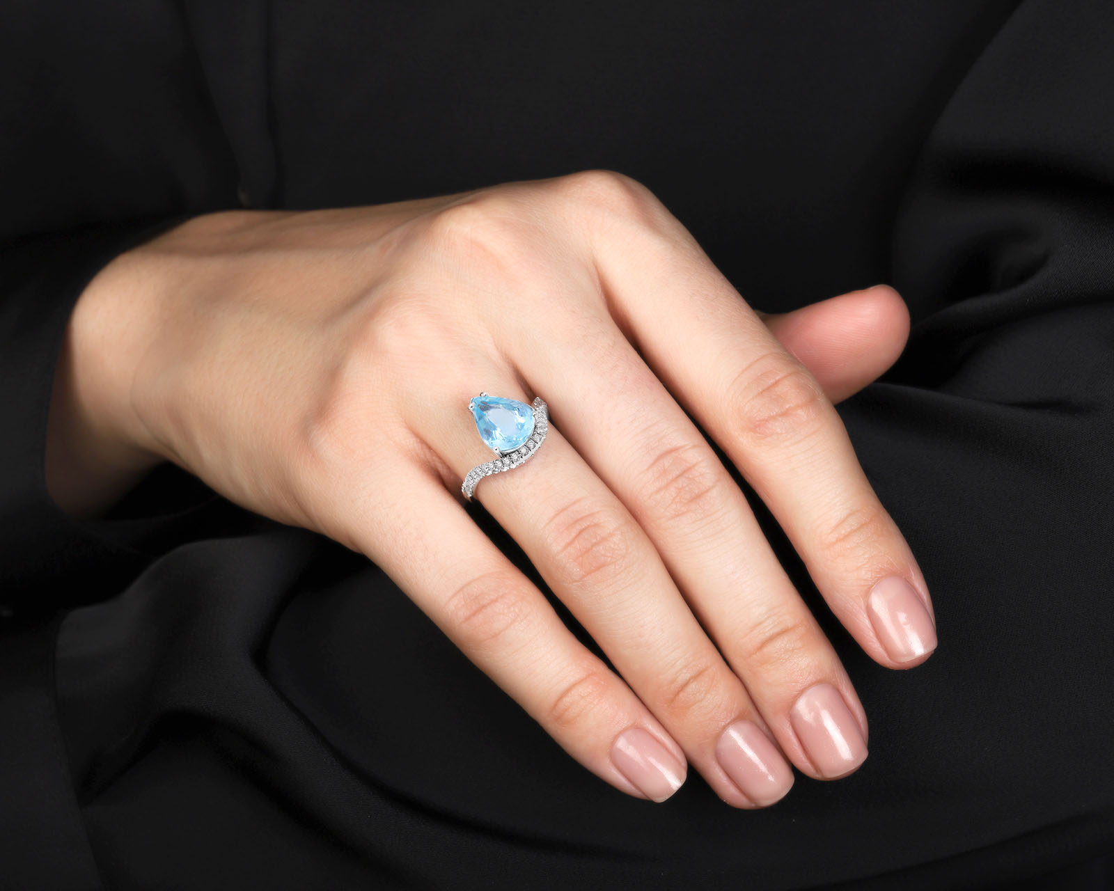 Золотое кольцо с аквамарином 0.60ct и морганитами 1.02ct Evgeny Matveev — настоящее произведение искусства, в котором воплощено не только мастерство ювелира, но и актуальные тренды. Это доказательство вашего изысканного вкуса, высокого статуса и яркий акцент в стильном образе. Вставка — 1 аквамарин огранки "груша" 0.60ct, 2 морганита огранки "груша" 1.02ct, 21 бриллиант круглой огранки 0.35ct 3/5, 1 турмалин параиба круглой огранки 0.01ct, а обрамлением служит золото 750 пробы. Такое сочетание отлично смотрится и позволяет реализовывать самые необычные задумки вашего стиля. Размер ювелирного изделия — 16.75, а общий вес — 3.92 г, и на пальце оно выглядит просто шикарно, сразу привлекая восхищенное внимание.