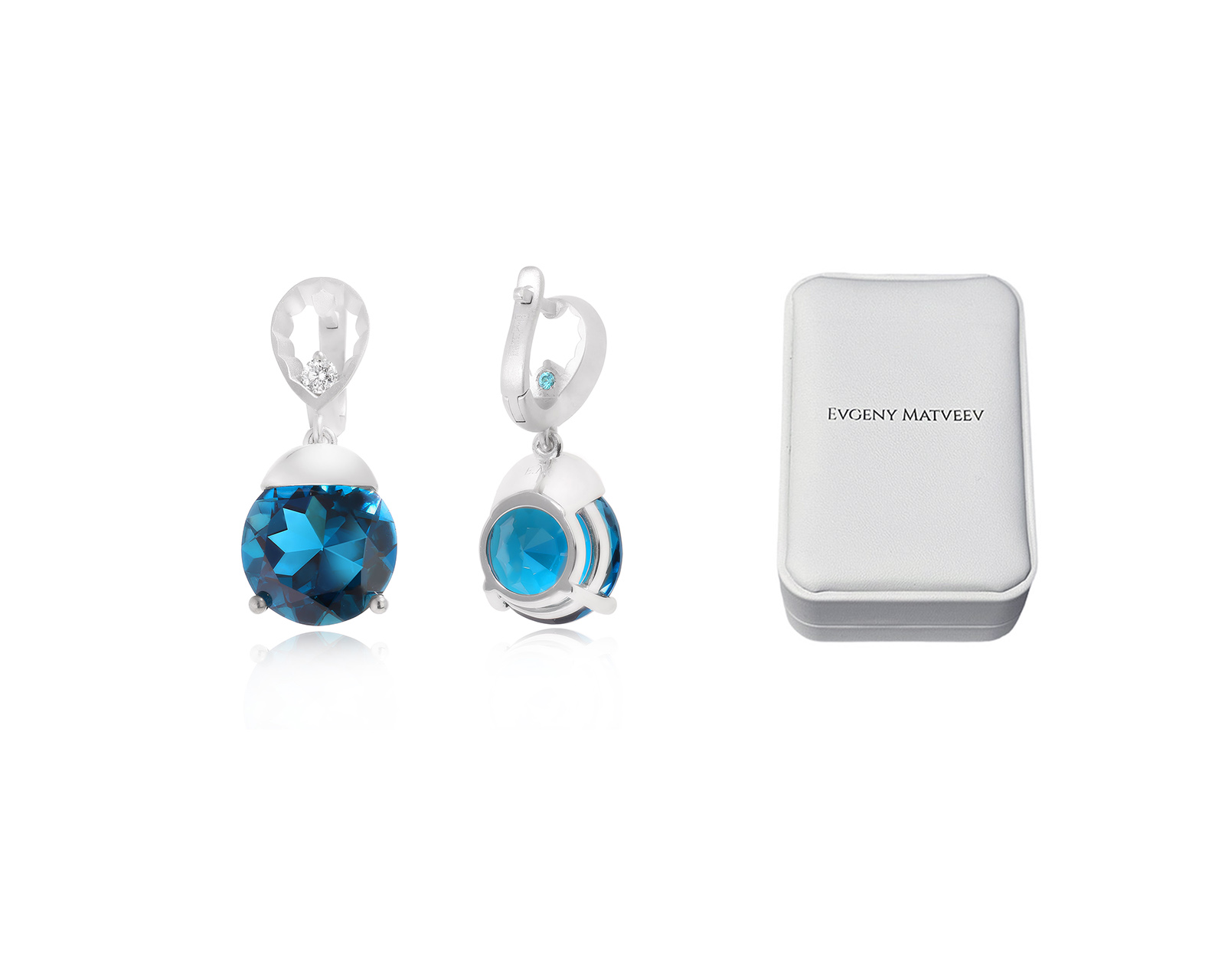 Золотые серьги с топазами 19.15ct и бриллиантами 0.19ct Evgeny Matveev 301224/Б84