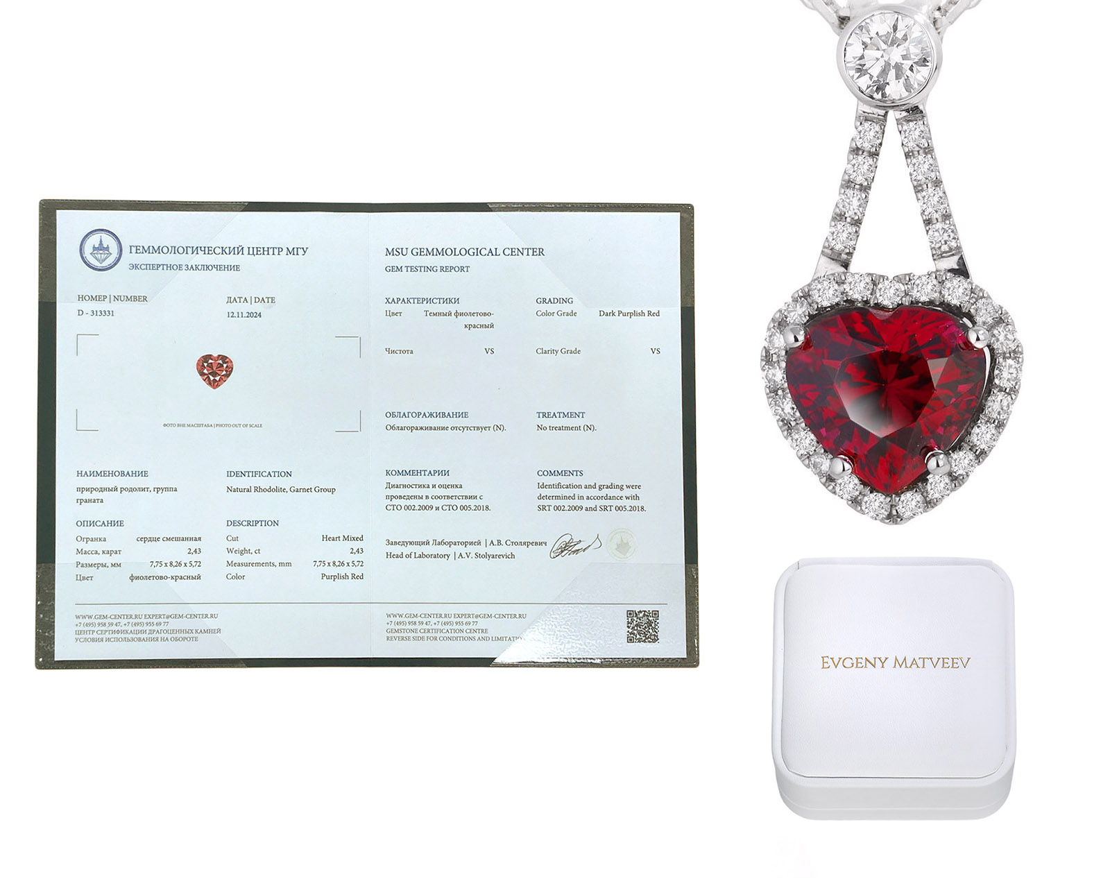 Золотое колье с гранатом родолитом 2.43ct Evgeny Matveev 270325/Б110