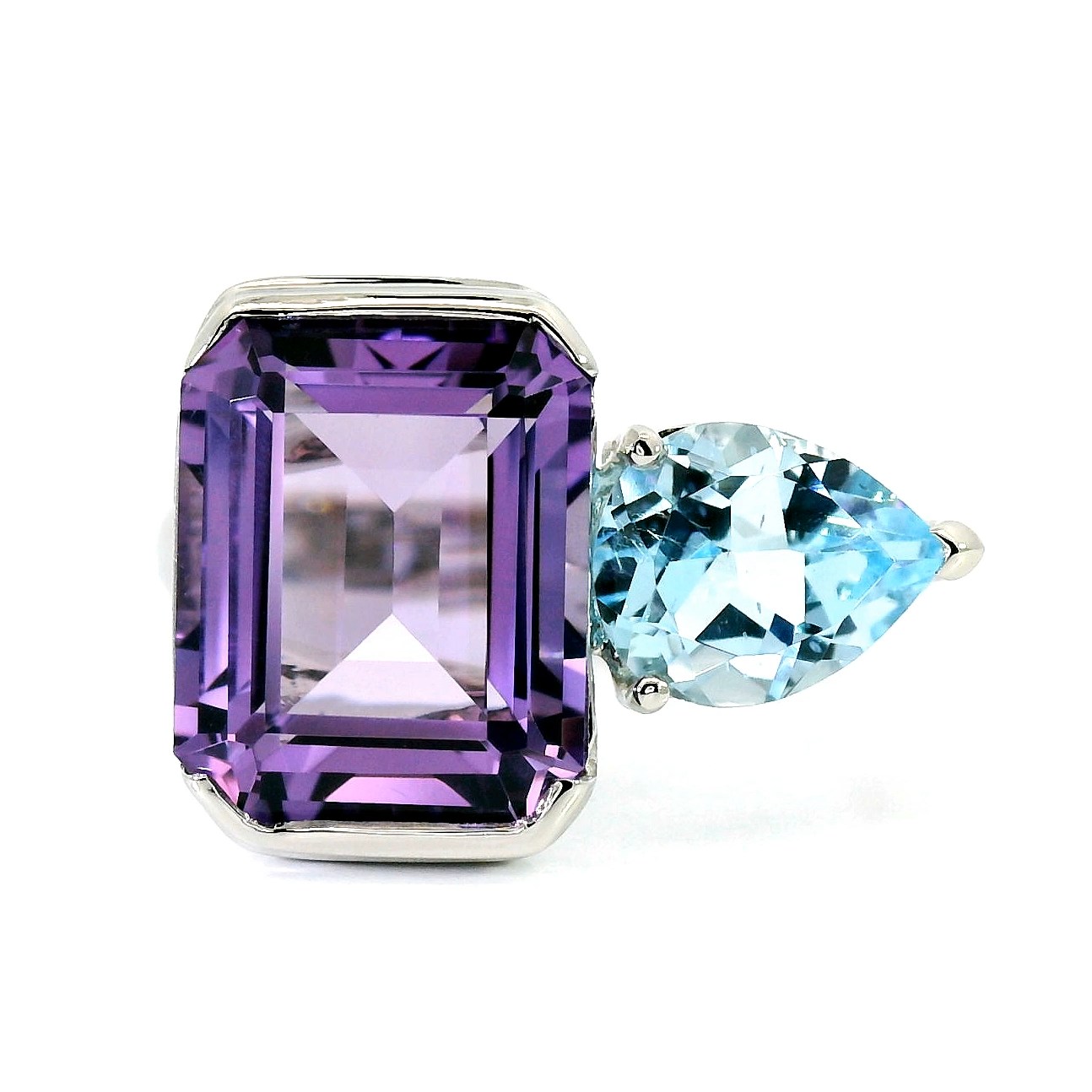Золотое кольцо с аметистом 4.25ct и топазом 1.49ct — настоящее произведение искусства, в котором воплощено не только мастерство ювелира, но и актуальные тренды. Это доказательство вашего изысканного вкуса, высокого статуса и яркий акцент в стильном образе. Вставка — 1 аметист огранки "октагон" 4.25ct, 1 топаз огранки "груша" 1.49ct, а обрамлением служит золото 585 пробы. Такое сочетание отлично смотрится и позволяет реализовывать самые необычные задумки вашего стиля. Размер ювелирного изделия — 17, бесплатно изменим на любой от 16.5 до 18, а общий вес — 6.18 г, и на пальце оно выглядит просто шикарно, сразу привлекая восхищенное внимание.