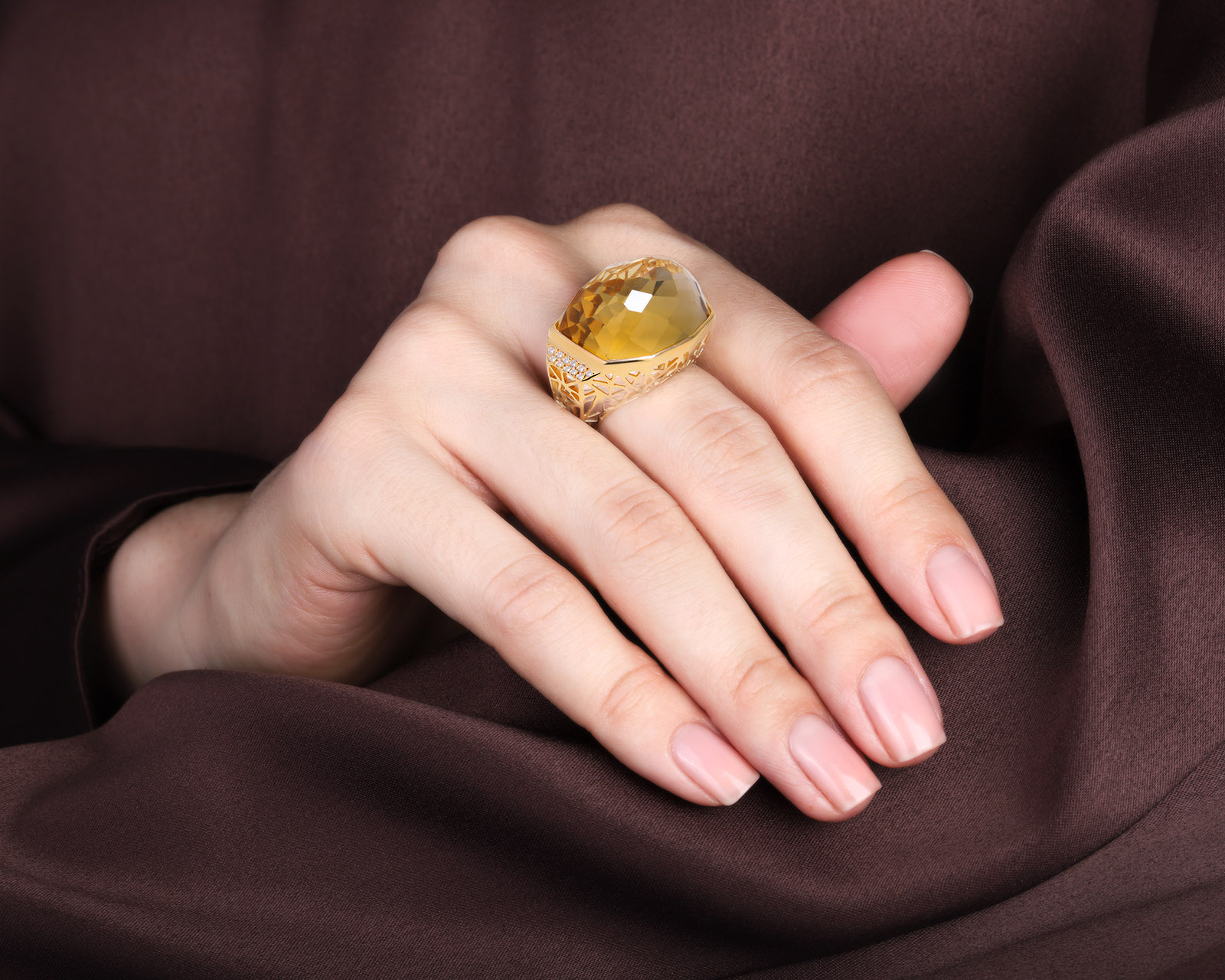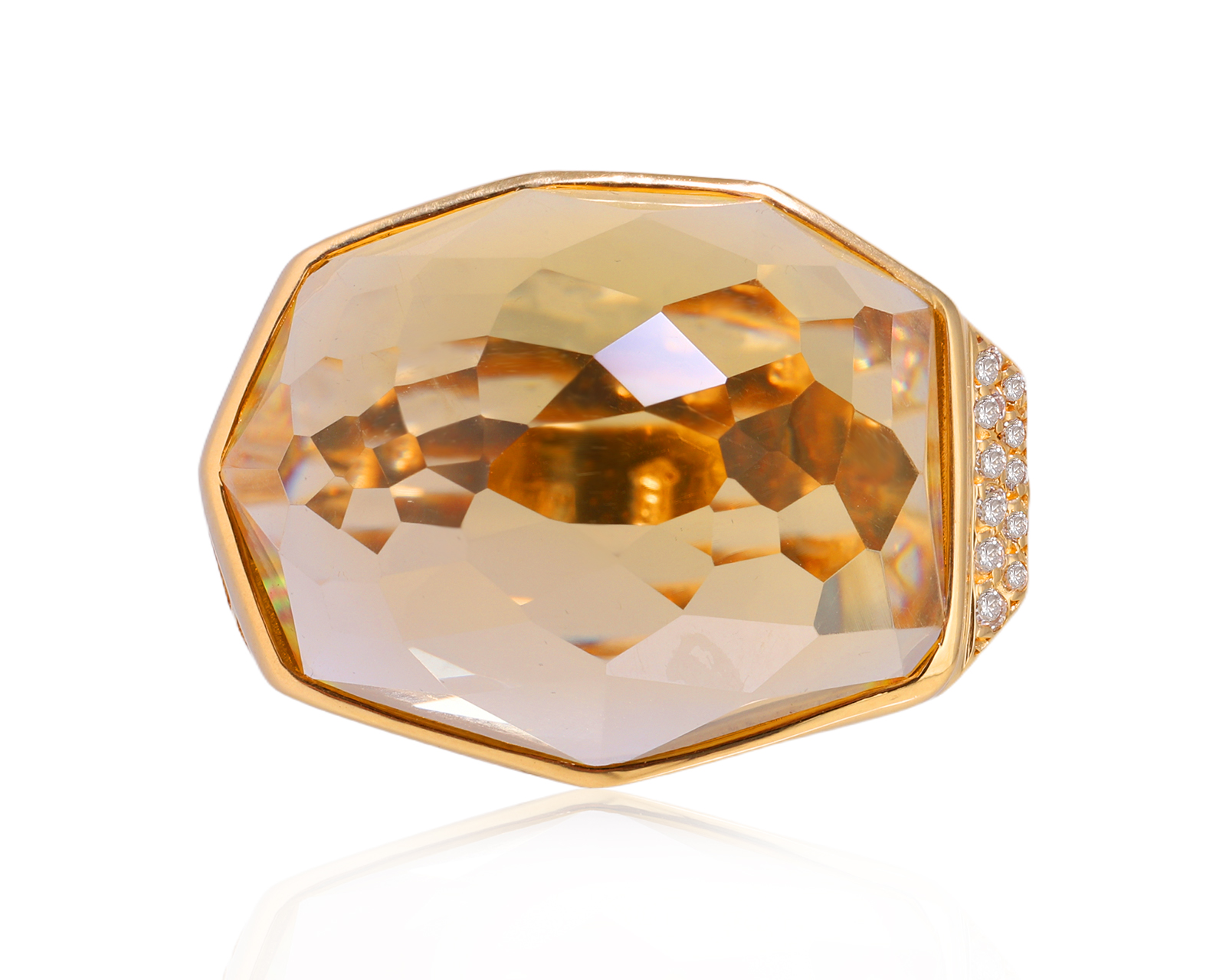 Золотое кольцо с цитрином 29.00ct и бриллиантами 0.09ct