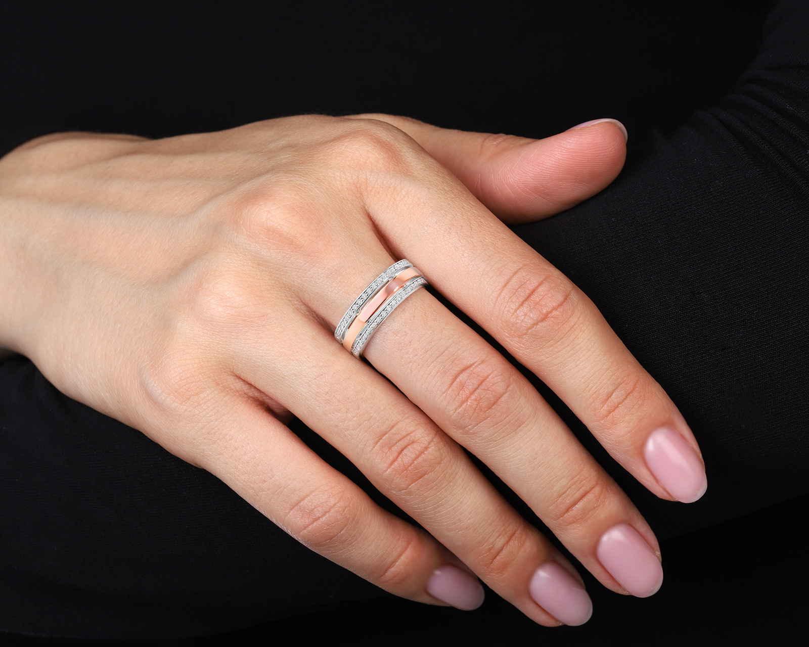 Золотое кольцо с бриллиантами 0.43ct — настоящее произведение искусства, в котором воплощено не только мастерство ювелира, но и актуальные тренды. Это доказательство вашего изысканного вкуса, высокого статуса и яркий акцент в стильном образе. Вставка — 1 бриллиант круглой огранки 0.05ct 4/4, 14 бриллиантов круглой огранки 0.20ct 4/5-5/6, 30 бриллиантов круглой огранки 0.18ct 4/5-6/7, а обрамлением служит золото 750 пробы. Такое сочетание отлично смотрится и позволяет реализовывать самые необычные задумки вашего стиля. Размер ювелирного изделия — 17.25, бесплатно изменим на любой от 16.25 до 18.75, а общий вес — 4.93 г, и на пальце оно выглядит просто шикарно, сразу привлекая восхищенное внимание.