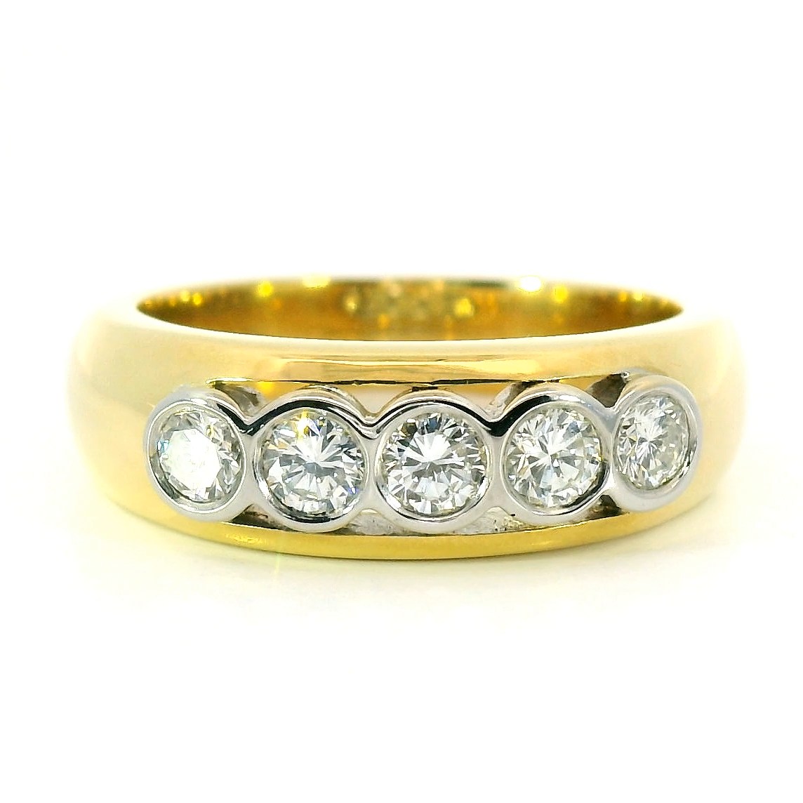 Золотое кольцо с бриллиантами 0.45ct — настоящее произведение искусства, в котором воплощено не только мастерство ювелира, но и актуальные тренды. Это доказательство вашего изысканного вкуса, высокого статуса и яркий акцент в стильном образе. Вставка — 5 бриллиантов круглой огранки 0.45ct 3/3-3/4, а обрамлением служит золото 750 пробы. Такое сочетание отлично смотрится и позволяет реализовывать самые необычные задумки вашего стиля. Размер ювелирного изделия — 16.75, бесплатно изменим на любой от 15.75 до 17.75, а общий вес — 7.61 г, и на пальце оно выглядит просто шикарно, сразу привлекая восхищенное внимание.