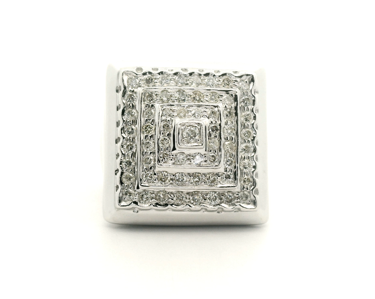 Золотое кольцо-печатка с черными и белыми бриллиантами 1.35ct 201218/12