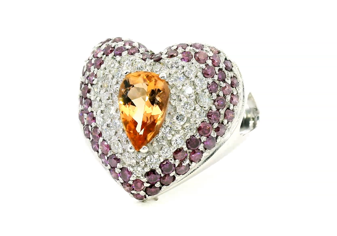 Золотое кольцо с бриллиантами 1.55ct и турмалином 0.90ct — настоящее произведение искусства, в котором воплощено не только мастерство ювелира, но и актуальные тренды. Это доказательство вашего изысканного вкуса, высокого статуса и яркий акцент в стильном образе. Вставка — 1 турмалин огранки "груша" 0.90ct, 64 пурпурных синтетических бриллианта круглой огранки 1.15ct, 36 бриллиантов круглой огранки 0.40ct 3/4-3/5, а обрамлением служит золото 750 пробы. Такое сочетание отлично смотрится и позволяет реализовывать самые необычные задумки вашего стиля. Размер ювелирного изделия — 20, бесплатно изменим на любой от 19 до 21, а общий вес — 11.31 г, и на пальце оно выглядит просто шикарно, сразу привлекая восхищенное внимание.