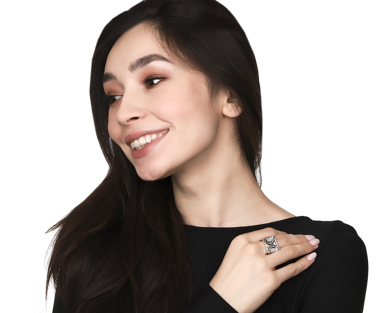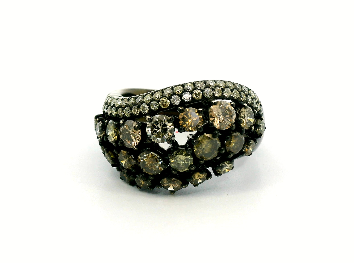 Золотое кольцо с бриллиантами 2.47ct — настоящее произведение искусства, в котором воплощено не только мастерство ювелира, но и актуальные тренды. Это доказательство вашего изысканного вкуса, высокого статуса и яркий акцент в стильном образе. Вставка — 22 бриллианта круглой огранки 2.15ct fancy/5-fancy/6, 47 бриллиантов круглой огранки 0.32ct fancy/5-fancy/6, а обрамлением служит золото 750 пробы. Такое сочетание отлично смотрится и позволяет реализовывать самые необычные задумки вашего стиля. Размер ювелирного изделия — 17.5, бесплатно изменим на любой от 16.5 до 18.5, а общий вес — 8.24 г, и на пальце оно выглядит просто шикарно, сразу привлекая восхищенное внимание.