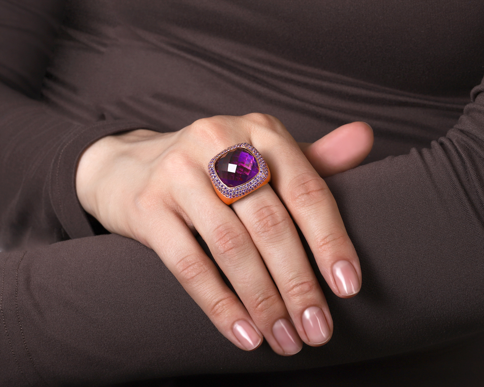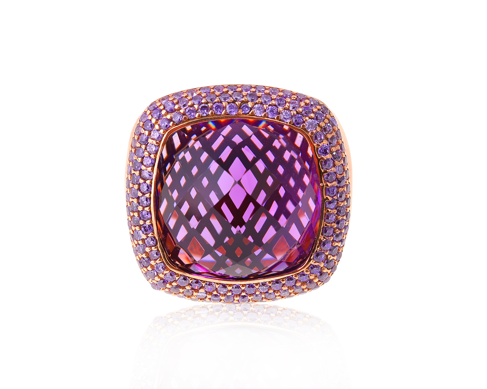 Золотое кольцо с аметистом 10.15ct и фианитами 2.94ct
