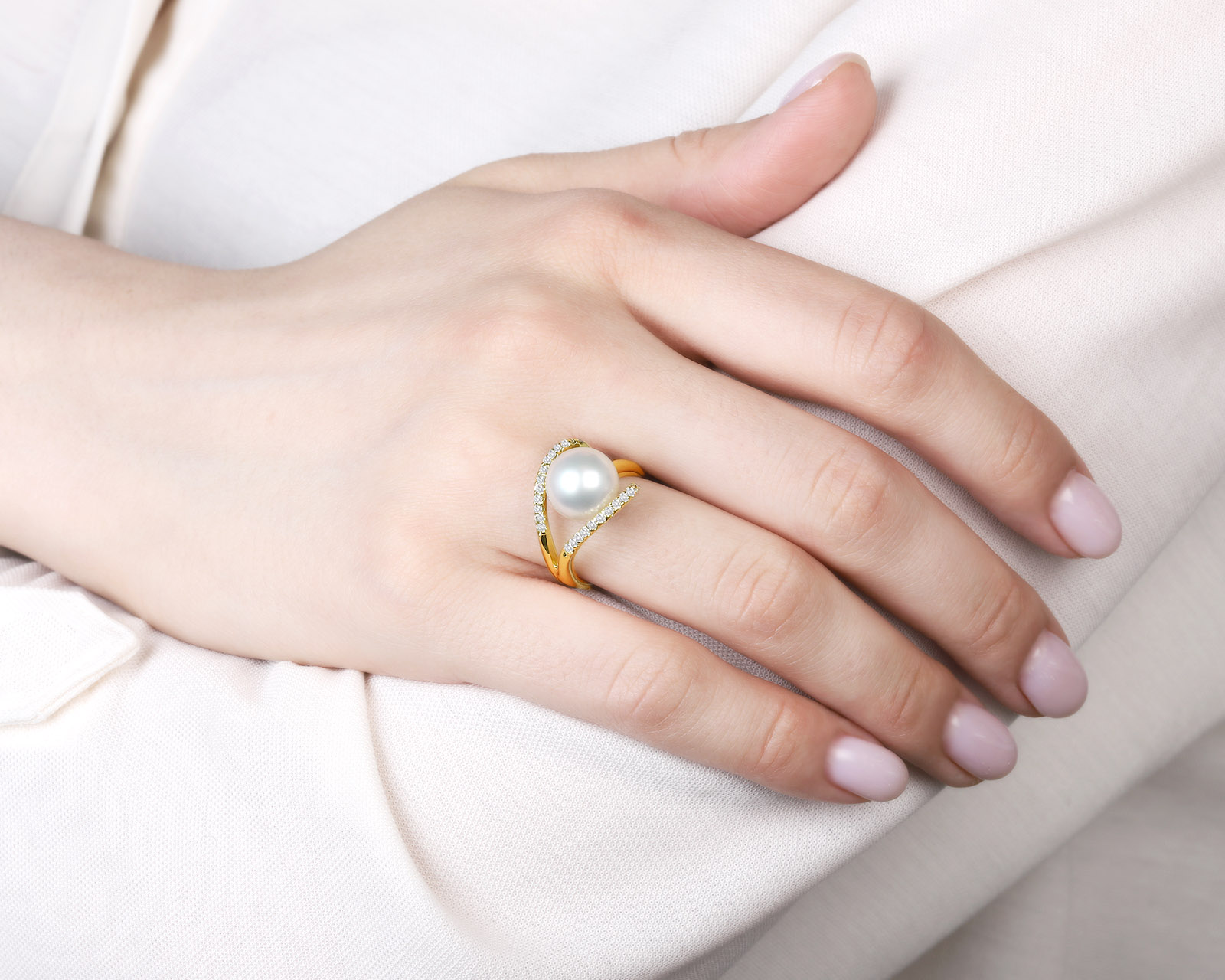 Романтичное золотое кольцо с жемчугом 10.50 мм