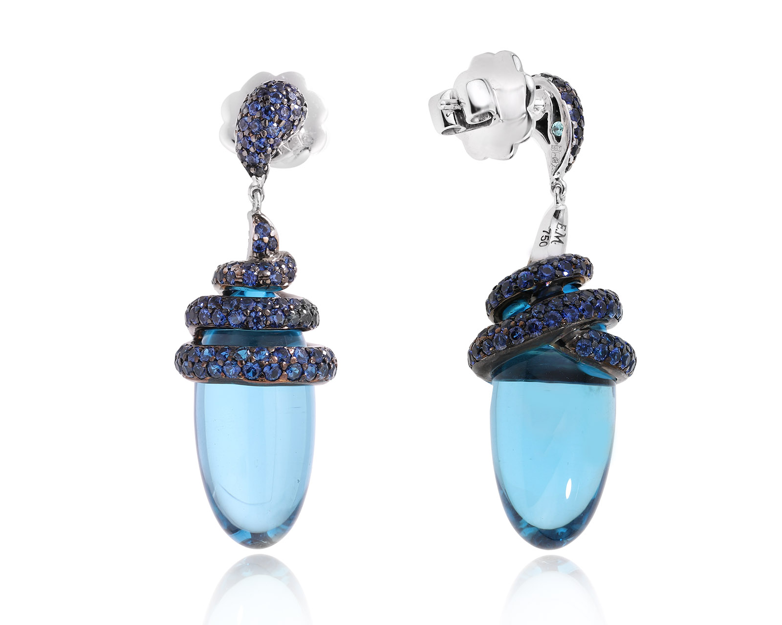 Золотые серьги с топазами 45.00ct и сапфирами 5.45ct Evgeny Matveev 231224/7