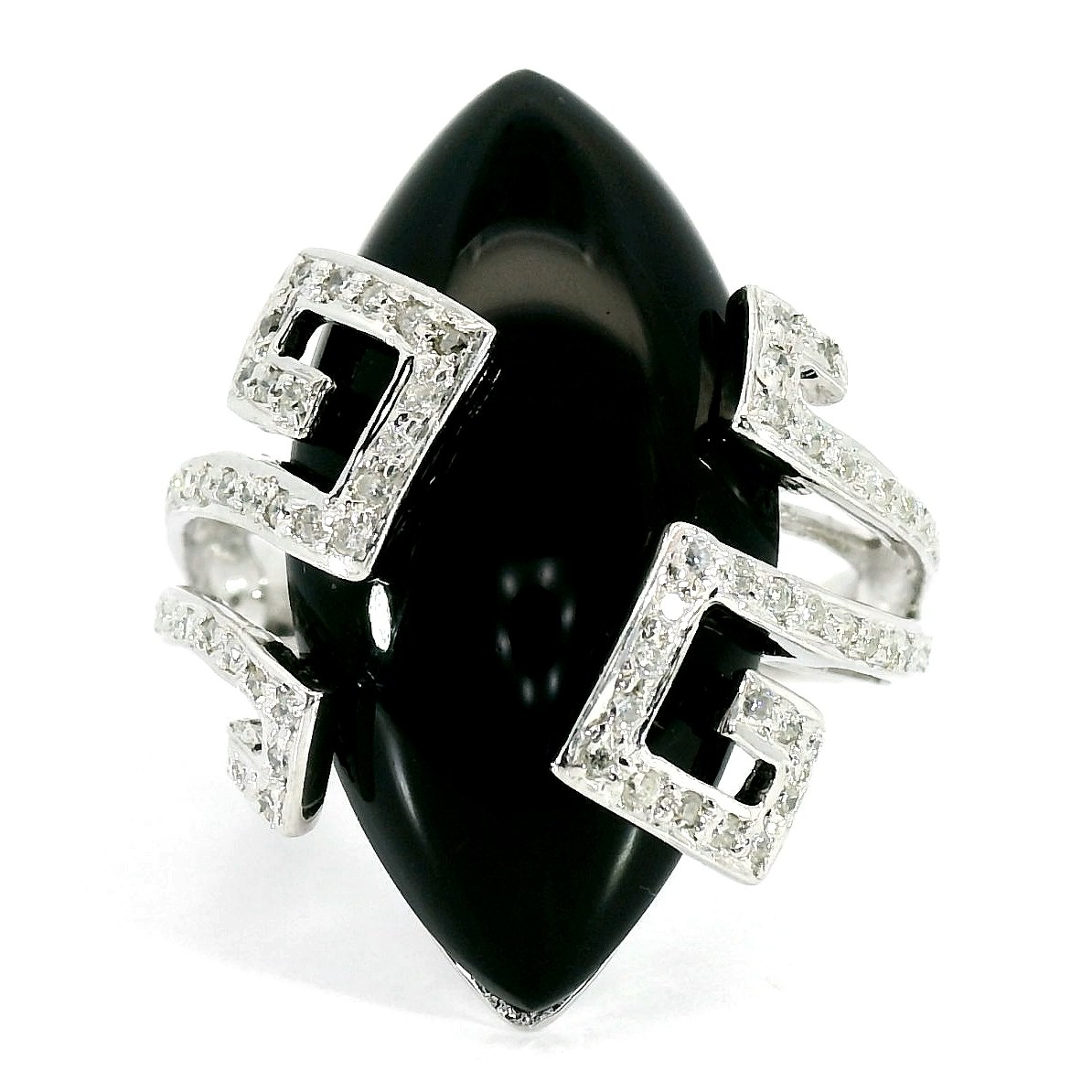 Золотое кольцо с ониксом 11.22ct и бриллиантами 0.30ct — настоящее произведение искусства, в котором воплощено не только мастерство ювелира, но и актуальные тренды. Это доказательство вашего изысканного вкуса, высокого статуса и яркий акцент в стильном образе. Вставка — 1 оникс огранки "кабошон маркиз" 11.22ct, 70 бриллиантов круглой огранки 0.30ct 3/5-4/6, а обрамлением служит золото 750 пробы. Такое сочетание отлично смотрится и позволяет реализовывать самые необычные задумки вашего стиля. Размер ювелирного изделия — 17.75, бесплатно изменим на любой от 17.25 до 18.25, а общий вес — 8.31 г, и на пальце оно выглядит просто шикарно, сразу привлекая восхищенное внимание.