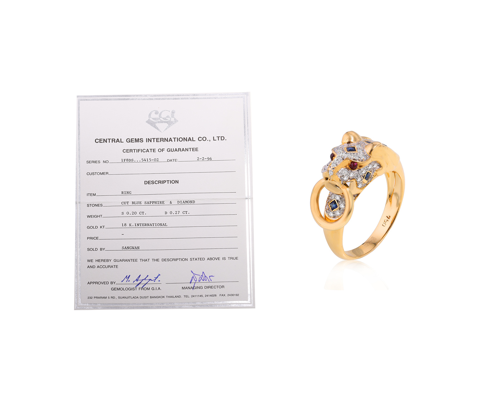 Золотое кольцо с сапфирами 0.20ct и бриллиантами 0.27ct