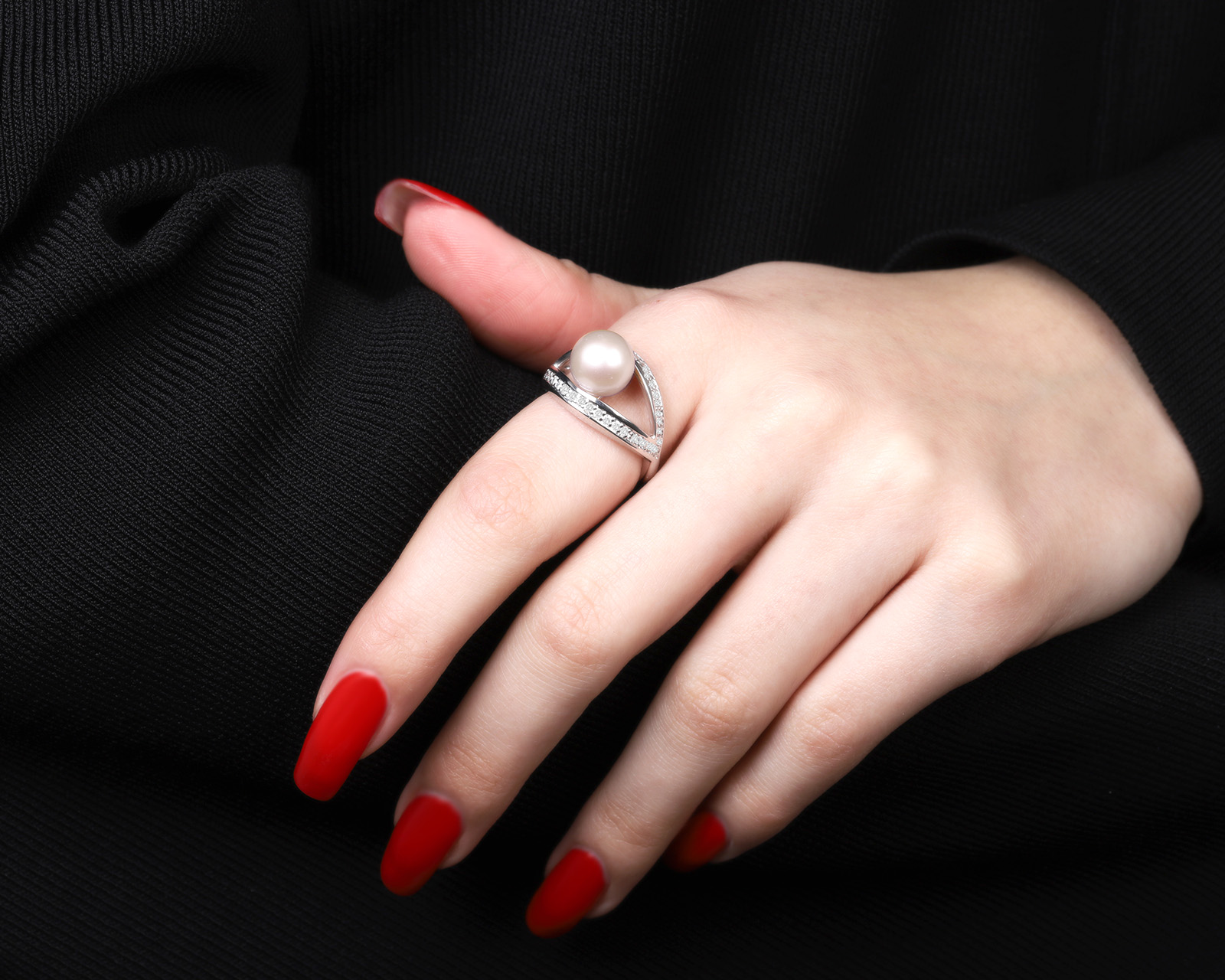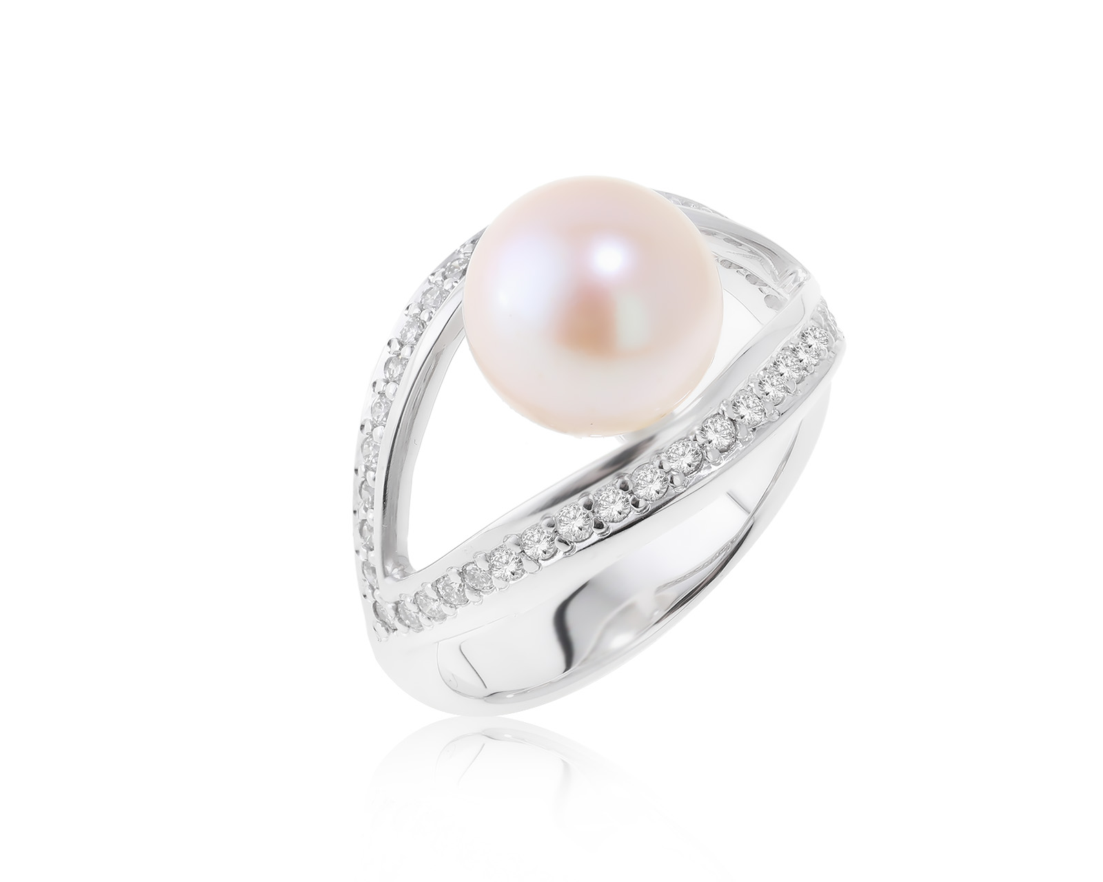 Золотое кольцо с жемчугом 8.20 мм и бриллиантами 0.32ct 090625/3