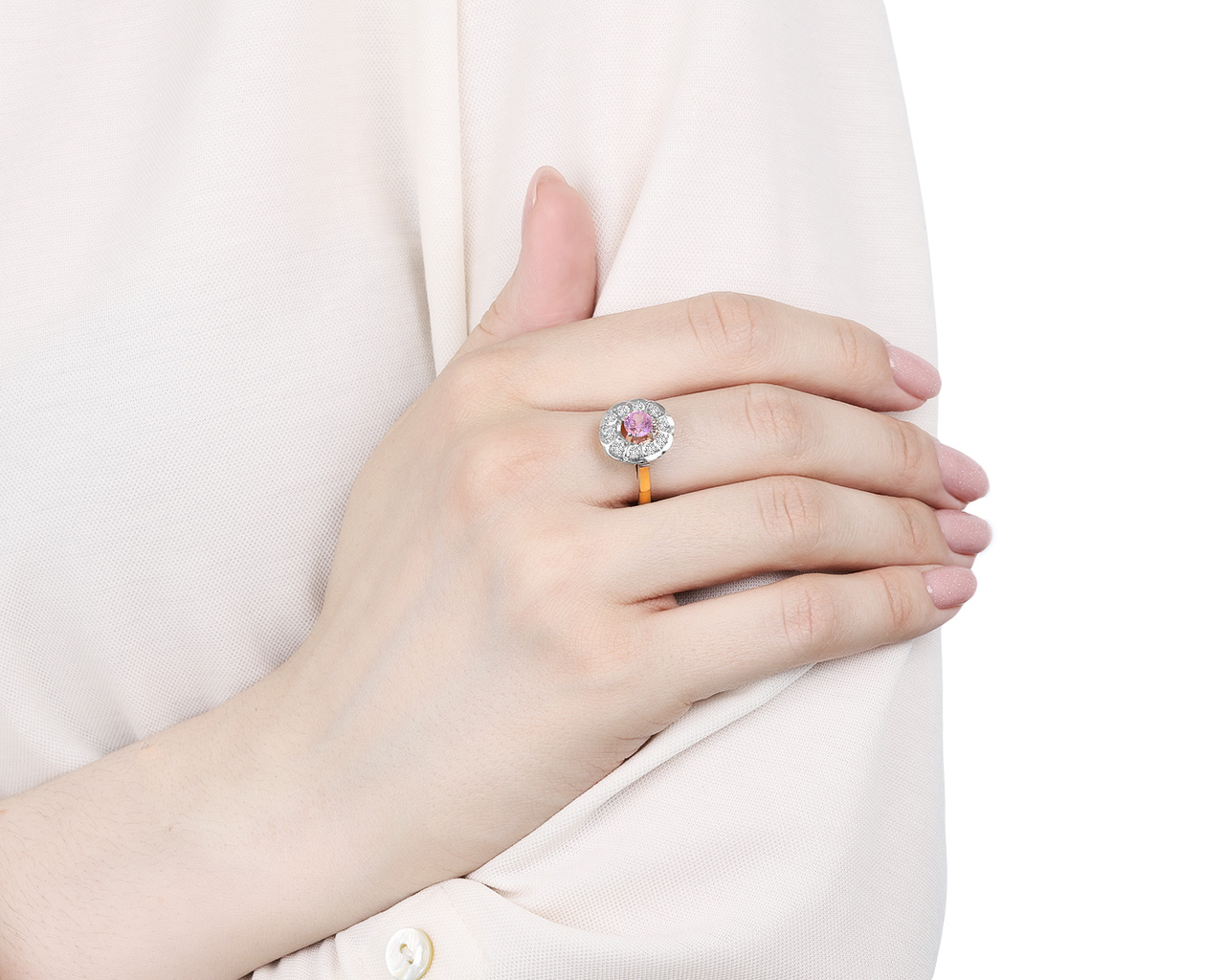 Золотое кольцо с сапфирами 0.61ct и бриллиантами 0.51ct — настоящее произведение искусства, в котором воплощено не только мастерство ювелира, но и актуальные тренды. Это доказательство вашего изысканного вкуса, высокого статуса и яркий акцент в стильном образе. Вставка — 33 сапфира круглой огранки 0.61ct 4/2, 33 бриллианта круглой огранки 0.51ct 3/6, а обрамлением служит золото 585 пробы. Такое сочетание отлично смотрится и позволяет реализовывать самые необычные задумки вашего стиля. Размер ювелирного изделия — 17.5, бесплатно изменим на любой от 16.5 до 18.5, а общий вес — 4.31 г, и на пальце оно выглядит просто шикарно, сразу привлекая восхищенное внимание.
