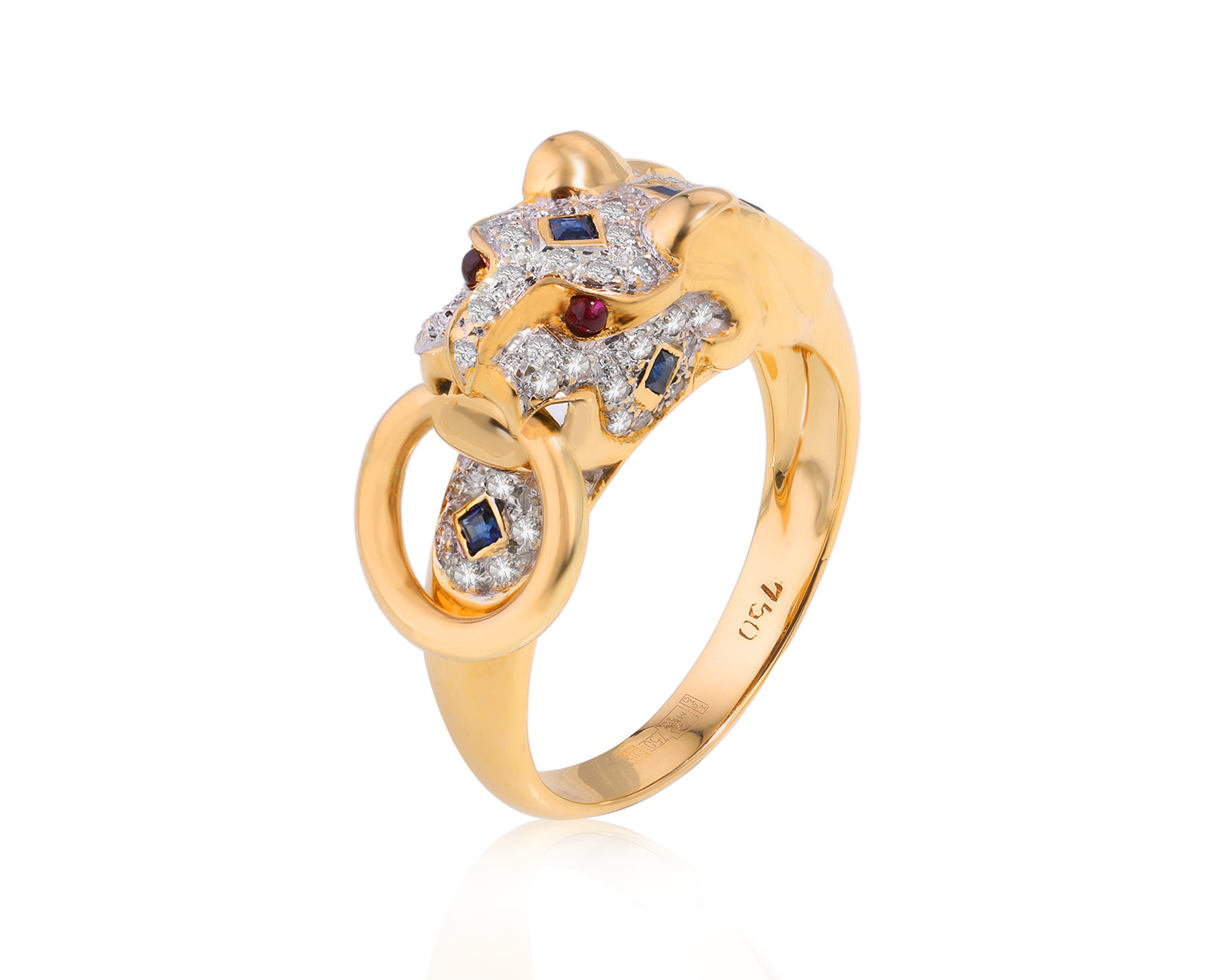 Золотое кольцо с сапфирами 0.20ct и бриллиантами 0.27ct 220524/13