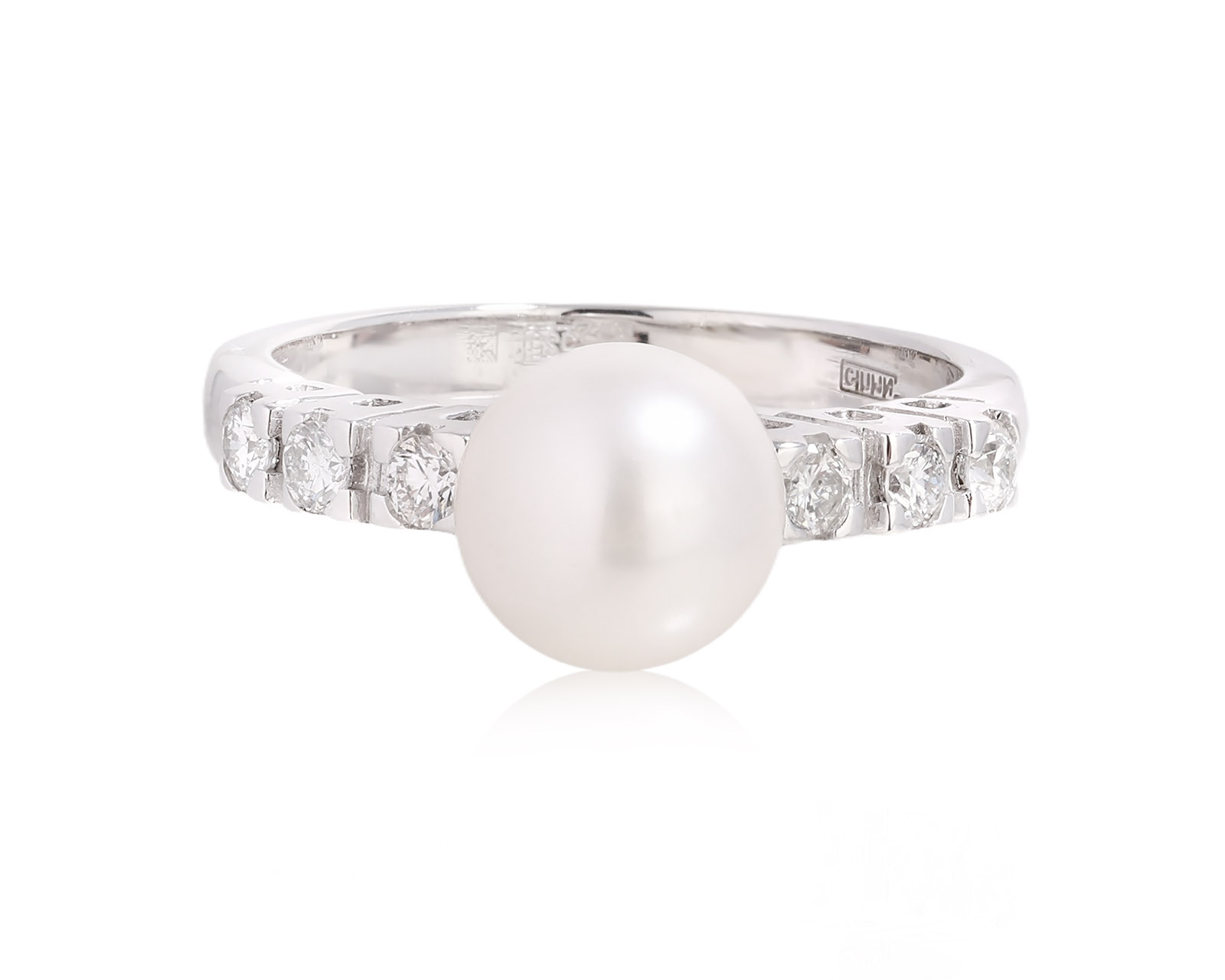 Золотое кольцо с жемчугом 8.20 мм и бриллиантами 0.32ct