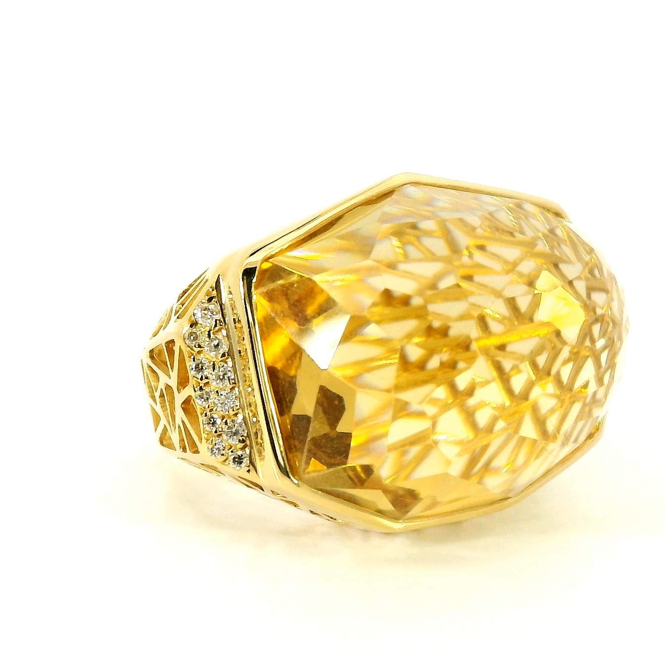 Золотое кольцо с кварцем 18.75ct и бриллиантами 0.12ct 130624/11