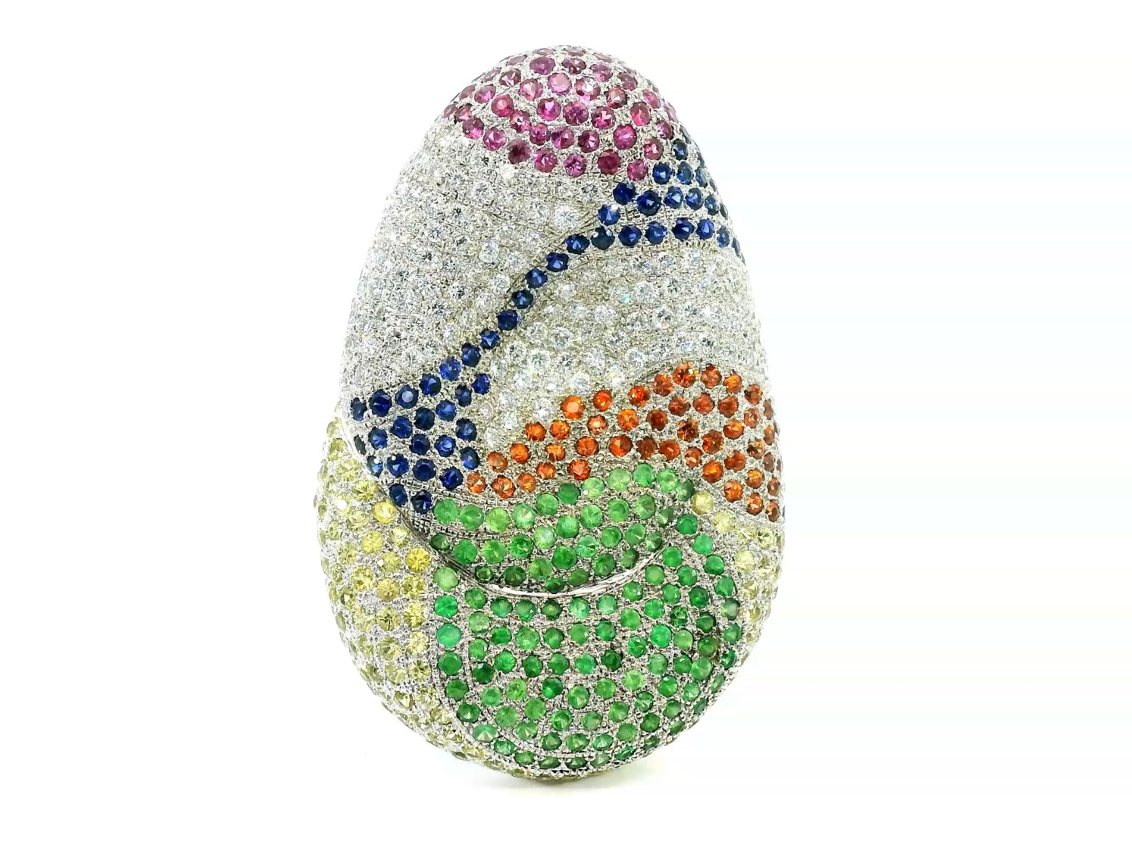 Золотое кольцо с цветными камнями 7.03ct — настоящее произведение искусства, в котором воплощено не только мастерство ювелира, но и актуальные тренды. Это доказательство вашего изысканного вкуса, высокого статуса и яркий акцент в стильном образе. Вставка — 81 тсаворит круглой огранки 1.71ct, 53 спессартина круглой огранки 0.80ct, 51 розовый сапфир круглой огранки 1.02ct, 110 желтых сапфиров круглой огранки 2.20ct, 65 сапфиров круглой огранки 1.30ct 3/3, 134 бриллианта круглой огранки 1.60ct 3/3-3/4, а обрамлением служит золото 750 пробы. Такое сочетание отлично смотрится и позволяет реализовывать самые необычные задумки вашего стиля. Размер ювелирного изделия — 17, бесплатно изменим на любой от 16 до 18, а общий вес — 22.42 г, и на пальце оно выглядит просто шикарно, сразу привлекая восхищенное внимание.