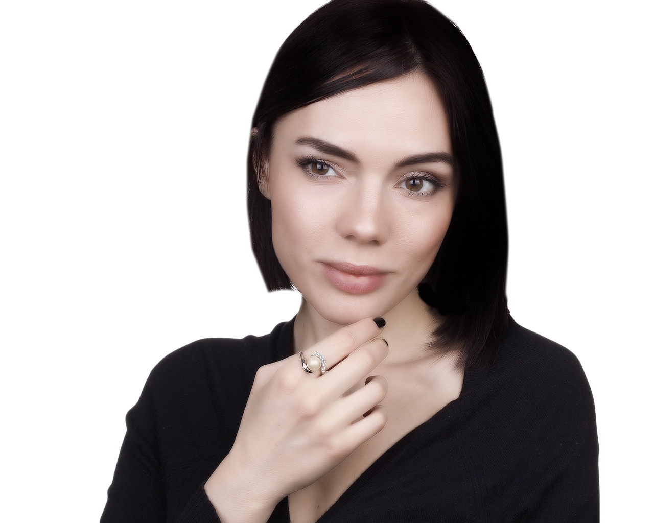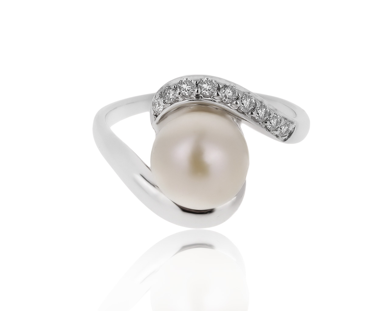 Стильное золотое кольцо с жемчугом 9.50 мм