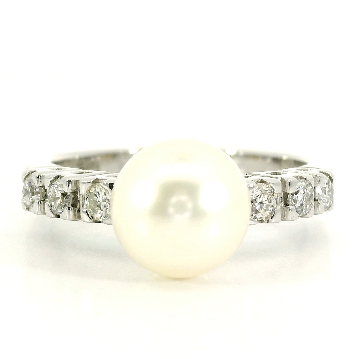 Золотое кольцо с жемчугом и бриллиантами 0.11ct 120924/10