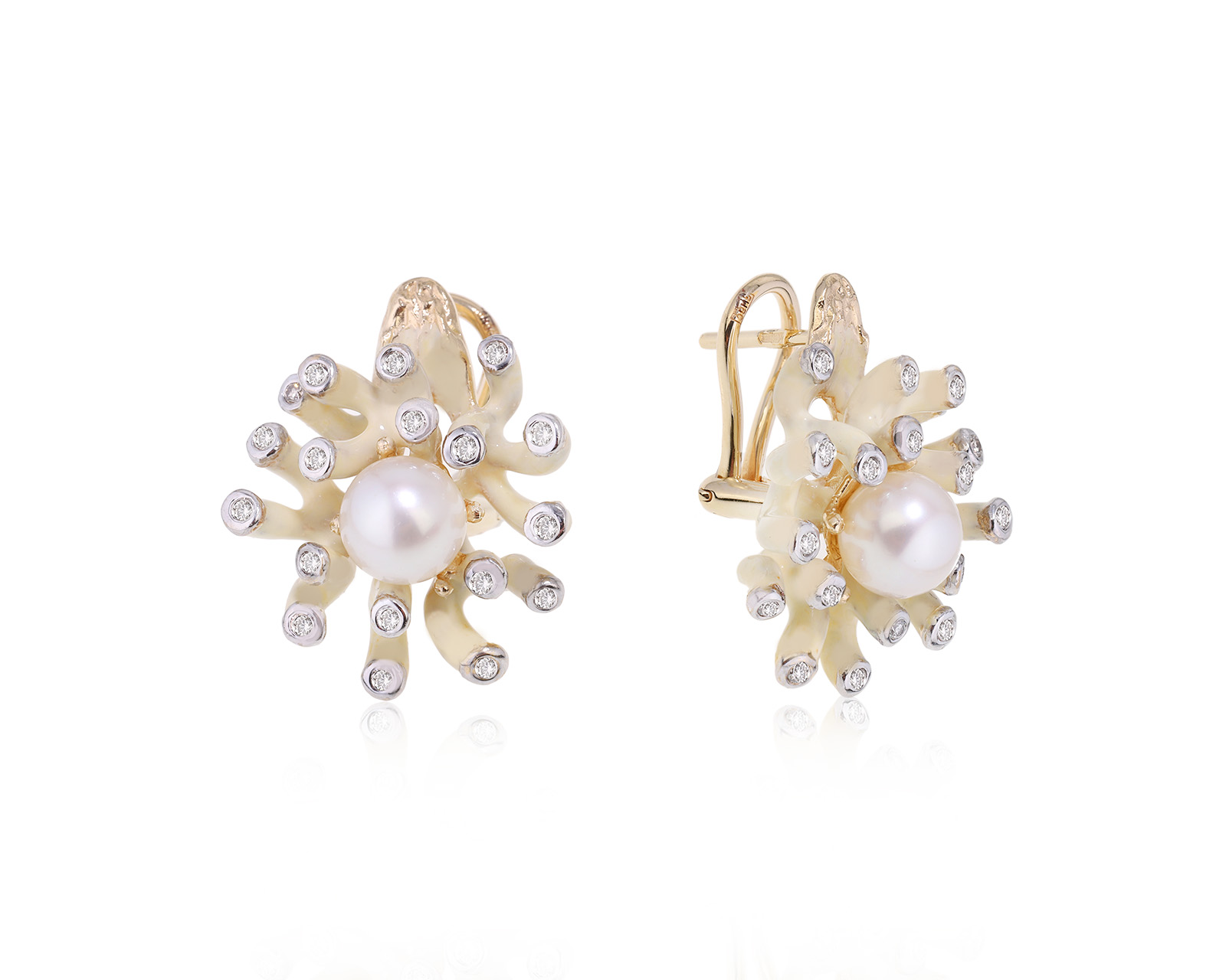Золотые серьги с жемчугом 8.00 мм и бриллиантами 0.54ct 220624/8
