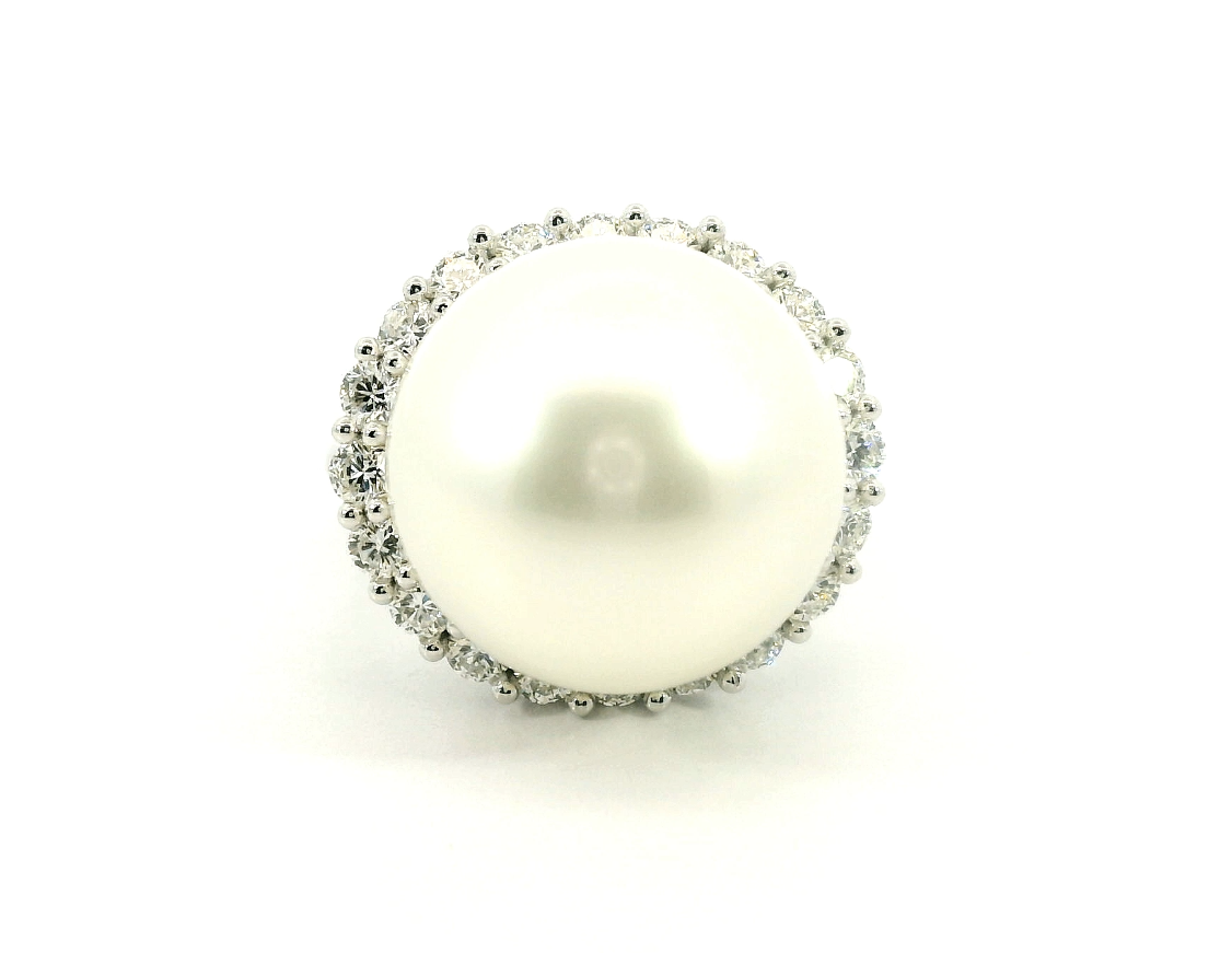Золотое кольцо с жемчугом и бриллиантами 1.05ct Evgeny Matveev — настоящее произведение искусства, в котором воплощено не только мастерство ювелира, но и актуальные тренды. Это доказательство вашего изысканного вкуса, высокого статуса и яркий акцент в стильном образе. Вставка — 1 жемчуг 16.15 мм, 20 бриллиантов круглой огранки 1.05ct 3/3-3/5, 1 турмалин параиба круглой огранки 0.02ct, а обрамлением служит золото 750 пробы. Такое сочетание отлично смотрится и позволяет реализовывать самые необычные задумки вашего стиля. Размер ювелирного изделия — 17.5, бесплатно изменим на любой от 16.5 до 18.5, а общий вес — 14.02 г, и на пальце оно выглядит просто шикарно, сразу привлекая восхищенное внимание.