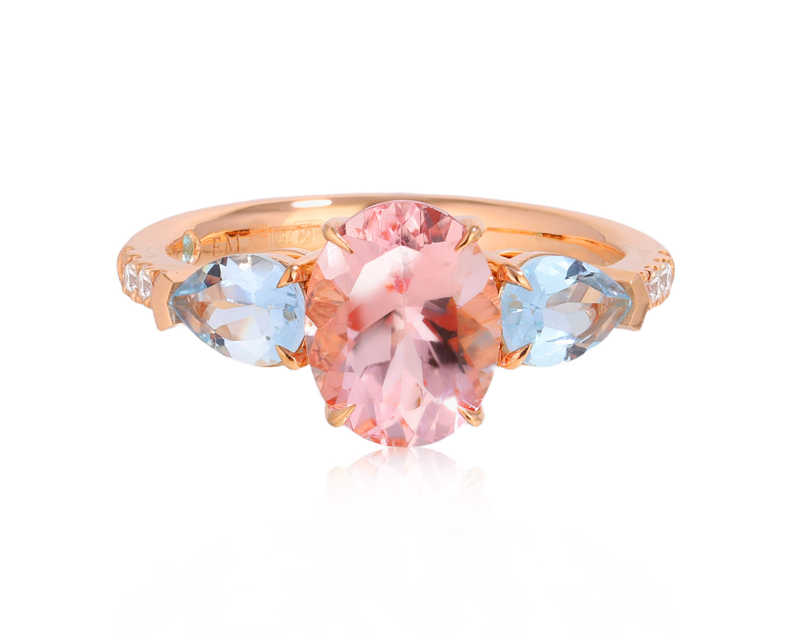 Золотое кольцо с морганитом 1.70ct и аквамаринами 0.66ct Evgeny Matveev 290725/Б211