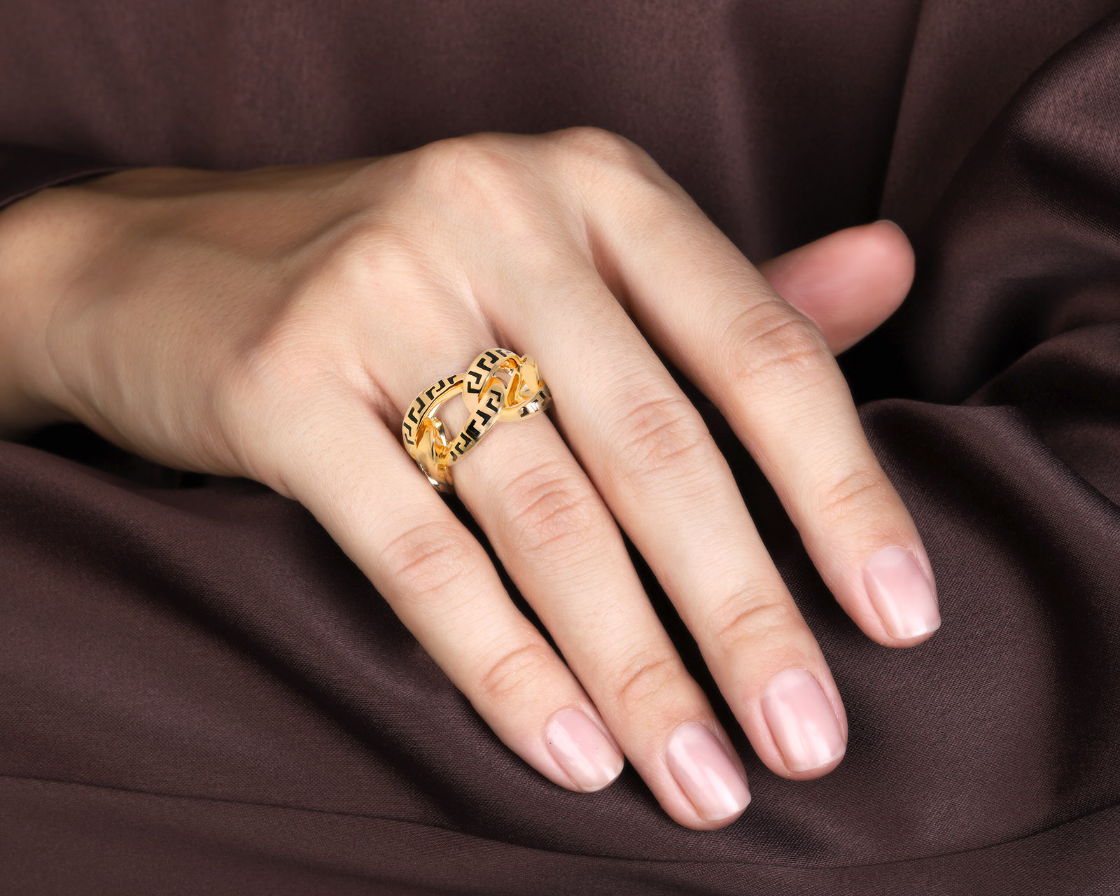 Оригинальное золотое кольцо с эмалью Versace