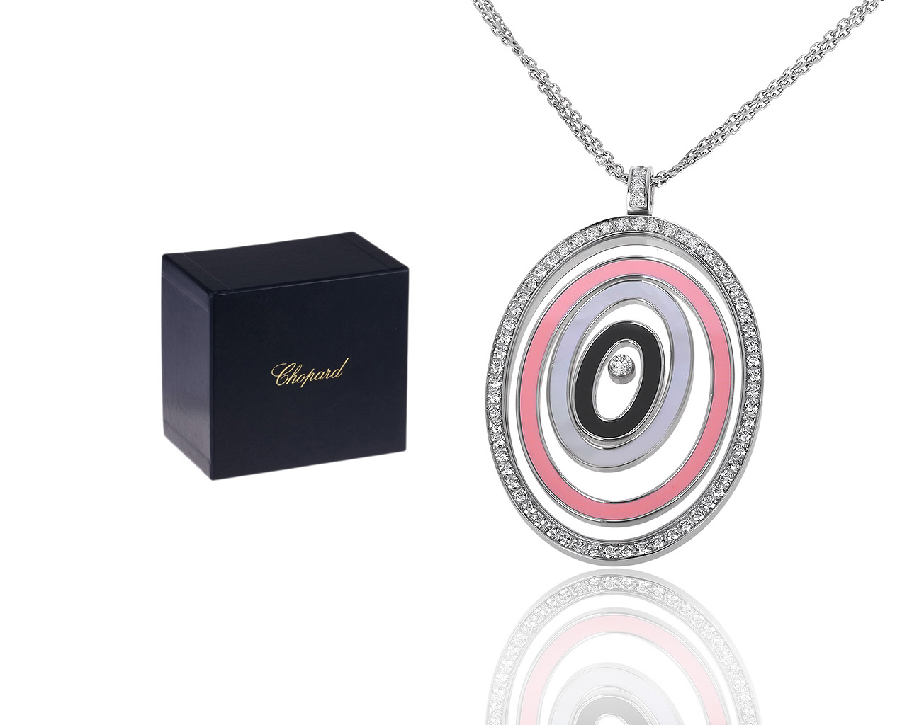 Оригинальное золотое колье c бриллиантом 0.10ct Chopard Happy Spirit Maxi 281023/7