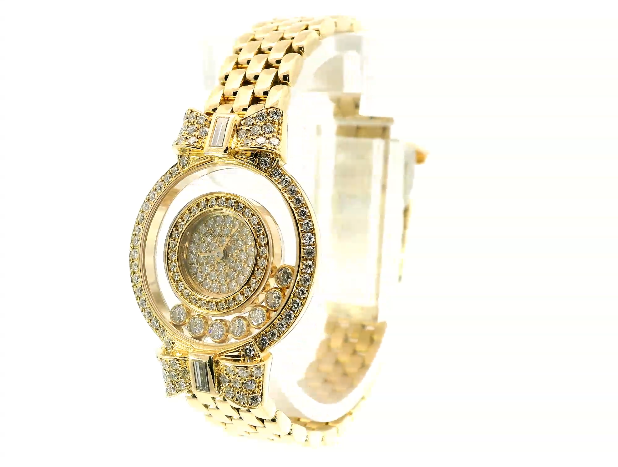 Представляем вашему вниманию оригинальные золотые часы с бриллиантами 1.54ct от всемирно известного бренда Chopard из коллекции Happy Diamonds.