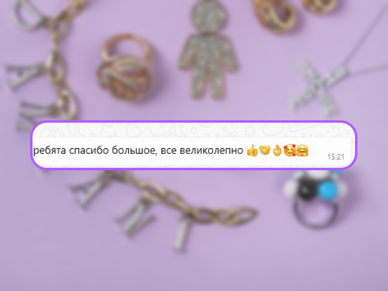 И опять спасибо! В очередной раз обратилась к мастерам компании с просьбой сотворить кольцо и воплотить в жизнь мои идеи. Обсудили,уточнили, договорились, сделали. Я в восторге! Спасибо огромное!